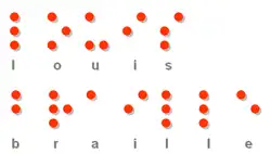- Le braille, système d’écriture à points saillants inventé par Louis Braille