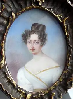 Son portrait enfant, vers 2/3 ans a été exécuté par Greuze, un autre daté de 1792 et signé Lisa, peut-être exécuté par sa grand-mère maternelle, enfin un portrait le représente en tenue de chasseur, exécuté par Berthon, élève de David, en 1826.