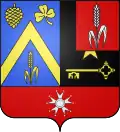Parti : au I, d'azur au chevron d'or accompagné, en chef à dextre d'une pomme de pin renversée, en chef à senestre d'un trèfle, et en pointe d'un épi, le tout d'or ; au II, de sable, à une clef d'or posée en fasce, surmontée d'une étoile du même ; le parti soutenu d'une champagne de gueules chargé de l'insigne des chevaliers légionnaires. |