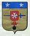 D'or à l'épée d'azur en fasce, à la pointe à dextre accompagnée en pointe d'une grenade enflammée de gueules, et surmontée d'un comble d'azur à deux étoiles d'argent, sur le tout de gueules au tiers de l'écu chargé du signe des chevaliers - Livrées : bleu, rouge, et jaune[4]. |