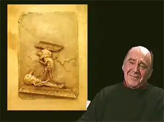 - ↑ Techniques mixtes sur bois, 191 × 91 × 26 cm.