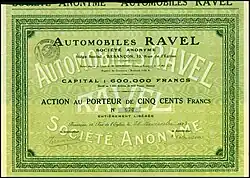Action de l'Automobiles Ravel S.A., issued 26. November 1923