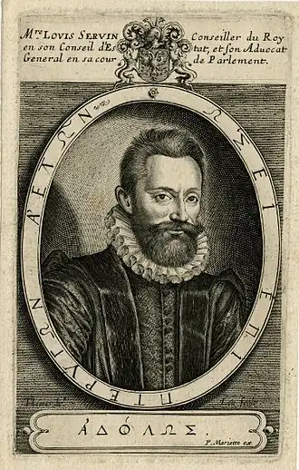 - ↑ En effet, les présidents au Parlement fidèles au roi ayant été embastillés par les Seize, aucun président ne se trouvait à Tours. L'avocat général Jacques de Faye, seigneur d'Espeisses fut alors promu président, et le choix d'un nouvel avocat général se porta sur Servin.