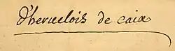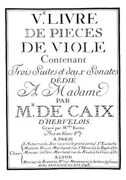 - ↑ Stéphan Perreau, « Pièces de Viole de Mr de Caix d'Hervelois », livret musicologique du disque Arion, ref. 3325480686948, Jay Bernfeld (viole) ensemble Fuoco e Cenere, 2005