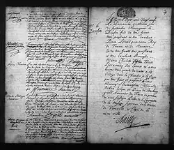 - ↑ AD 78, registre des baptêmes de la paroisse Notre-Dame de Versailles, année 1737, vue 26/76.