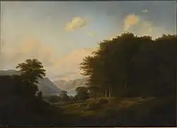 - Louise Héger, Au bord du lac, sans date, huile sur toile, 91 x 151 cm, signé en bas à droite, non daté.