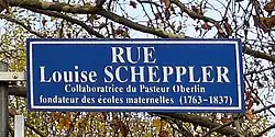 - ↑ Maurice Moszberger (dir.), « Louise-Scheppler (rue) », in Dictionnaire historique des rues de Strasbourg, Le Verger, Barr, 2012 (nouvelle éd. révisée), p. 310 (ISBN 9782845741393)