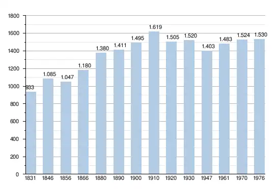 - Sources:INS, Rem:1831 jusqu'en 1970=recensements, 1976= nombre d'habitants au 31 décembre