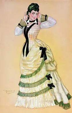 - 1927 — Théâtre dramatique de Léningrad (pour les trente-cinq ans de carrière d'Alexandra Gribounina dans le rôle de Mourzavetskaïa; mise en scène de Léonide Vivien, dir. art. de Constantin Koustodiev d'après les dessins de Boris Koustodiev; Glafira: Evguenia Wolf-Israël, Koupavina: Glebova, Mourzvetski: Boris Gorine-Goriaïnov, Berkoutov: Iouri Iouriev, Lyniaïev: Ivan Lerski et Alexandre Zrajevski, Tchougounov: Illarion Pevtsov, Anfoussa: Ekaterina Kortchaguina-Aexandrovskaïa, Pavline: Joukovski).