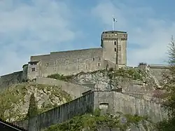 Vue générale de Lourdes et de son sanctuaire marial depuis le château fort. | |||||