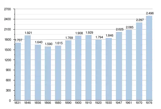 - Sources : INS, Rem. : 1831 jusqu'en 1970 = recensements, 1976 = nombre d'habitants au 31 décembre.