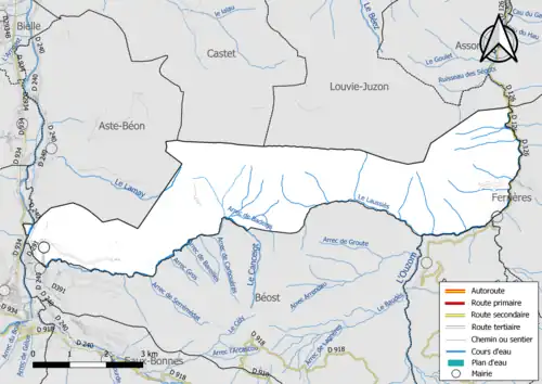 La commune est également traversée par l'Ouzoum (affluent du gave de Pau) et ses affluents :