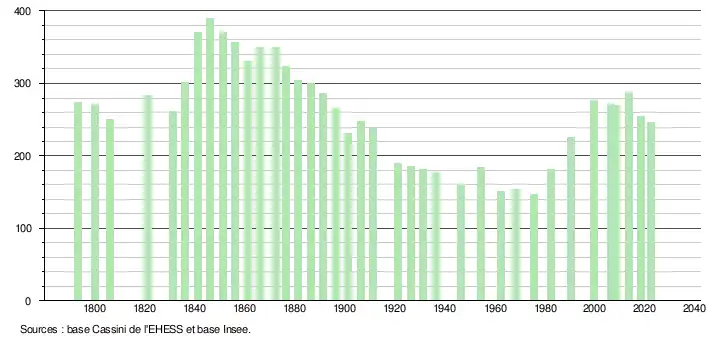 - ↑ Fiches Insee - Populations de référence de la commune pour les années 2006, 2007, 2008, 2009, 2010, 2011, 2012, 2013, 2014, 2015, 2016, 2017, 2018, 2019, 2020, 2021 et 2022.