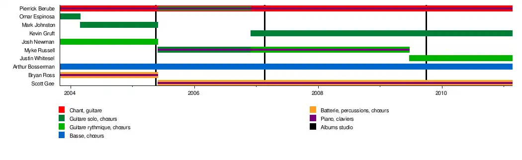 - Pierrick Berube – chant, guitare, piano (2003-2011), guitare rythmique (2005-2006)
