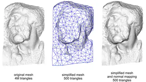 Des techniques d'infographie telles que le normal mapping et le placage de relief ont été conçus pour compenser la diminution des polygones en faisant apparaître un objet en low poly contenant plus de détails qu'il n'en a. Ceci est fait en modifiant l'ombrage des polygones pour contenir des détails internes qui ne sont pas dans le maillage[3].