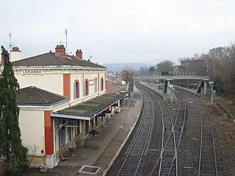 - En train depuis l'ouest ou le centre : ligne Tours ou Nantes - Lyon via Saint-Germain-des-Fossés, ligne Clermont - Lyon via Saint-Germain-des-Fossés (avec changement à Roanne ou à L'Arbresle).