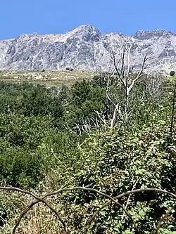 à l'ouest, depuis Capigliolu a e Furchelle, la démarcation grimpe vite aux 2 184 m du Capu di Villa avant de rejoindre Capu Falu au nord-ouest.