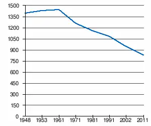 - 1 2 (sr + en) « Livre 20 : Vue d'ensemble comparative de la population en 1948, 1953, 1961, 1971, 1981, 1991, 2002 et 2011, données par localités) » [PDF], pages du recensement de 2011 en Serbie - Institut de statistique de la république de Serbie, (consulté le )