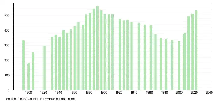 - ↑ Fiches Insee - Populations de référence de la commune pour les années 2006, 2007, 2008, 2009, 2010, 2011, 2012, 2013, 2014, 2015, 2016, 2017, 2018, 2019, 2020, 2021 et 2022.