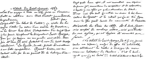 Lucien Bégule fait donc travailler beaucoup d'artistes extérieurs à ses ateliers. Parmi eux, Eugène Grasset tient une place à part. À Paris en 1885, il le rencontre et est ébloui par le talent de ce jeune artiste. Il l'initie à l'art du vitrail et lui demande une composition pour une représentation de saint Georges terrassant le dragon[33]. Ce vitrail verra le jour en 1889 et sera un des succès des nouveautés à l'exposition universelle de Paris de 1889. Il fait partie aujourd'hui des collections du musée des beaux-arts de Lyon[34].