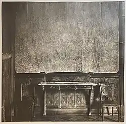 New York, Metropolitan Museum of Art: Wisteria Dining Room (salle à manger Glycines), 1910-1914. Lucien Lévy-Dhurmer a également réalisé quelques pièces de mobilier. Une des œuvres les plus notables est cette salle à manger de style Art nouveau de l'hôtel particulier d'Auguste Rateau[14]. La banquette conservée dans les collections du musée d'Orsay à Paris, provient également de cet hôtel, pour lequel Lévy-Dhurmer était chargé de toute la décoration intérieure. Ainsi, à l'égal d'un Gallé ou d'un Majorelle, son travail se rapproche d'une œuvre d'art total, l'artiste concevant toute l'architecture de la salle, mais également les pièces de mobilier, jusqu'aux poignées des portes et des tiroirs.