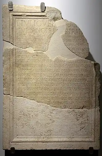 Lucius Julius Vehilius Gratus Julianus était un soldat et un chevalier qui a occupé un certain nombre de postes militaires et civils sous les règnes de Marc Aurèle et de son fils Commode. Julianus a reçu les honneurs deux fois pour son service militaire.