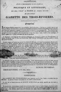 - ↑ Bibliothèques et archives nationales du Québec, « Gazette des Trois-Rivières », sur BANQ Numérique.