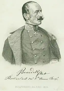 Il se distingua dans la campagne de 1848 contre le Piémont sous les ordres de Joseph Radetzky, et dans la guerre de Hongrie (1849), mais fut battu à la bataille de Sadowa par l'armée prussienne (1866).