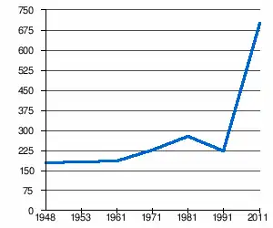 - 1 2 (sq) « Évolution de la population 1948-2011 », sur pop-stat.mashke.org (consulté le ).