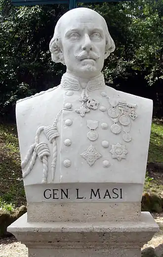 Luigi Masi est successivement major, général et commandant de la bridage Umbria. Pendant la République romaine, il assure la défense des Porta Cavalleggeri, Porta Angelica et du mur du Vatican avec la 2e brigade de la milice citadine et le bataillon léger d'infanterie. Il se distingue pendant la révolte des sept et demi de Palerme (1866).