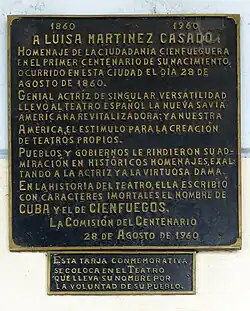 Luisa Martínez Casado, née le à Cienfuegos et morte dans la même ville le , est une actrice de théâtre cubaine qui fit des tournées en Espagne et dans toute l'Amérique latine. Elle est connue comme la plus célèbre actrice de langue espagnole du XIXe siècle.