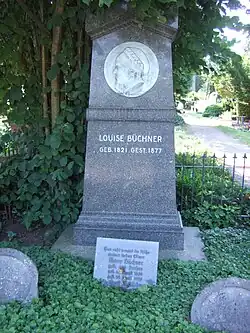 Luise Büchner décède à Darmstadt le 28 novembre 1877. Elle est enterrée dans une tombe d'honneur de l'Ancien cimetière (de) de la ville[1].