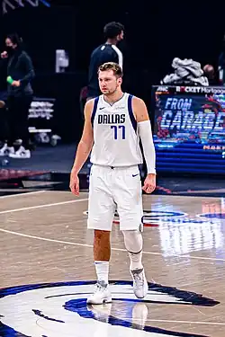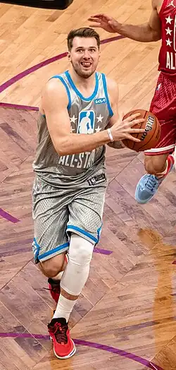 En février 2021, Dončić établit un nouveau record personnel de points avec 46 (à 17 sur 30 au tir), dans une victoire face aux Pelicans[127]. En mars 2021, il est sélectionné pour concourir au Skills Challenge aux côtés de Chris Paul, Domantas Sabonis, Robert Covington, Nikola Vučević et Julius Randle, ainsi que pour disputer le NBA All-Star Game 2021 à Atlanta, dans l'équipe de LeBron James. La Team LeBron gagne le match 170 à 150 et Dončić inscrit 8 points avec 3 rebonds et 8 passes décisives[128].