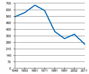 - 1 2 (sr + en) « Livre 20 : Vue d'ensemble comparative de la population en 1948, 1953, 1961, 1971, 1981, 1991, 2002 et 2011, données par localités) » [PDF], pages du recensement de 2011 en Serbie - Institut de statistique de la république de Serbie, (consulté le )
