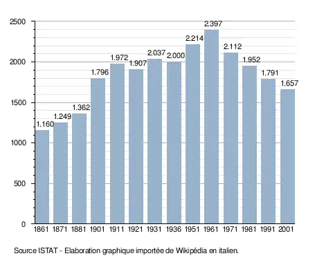 - ↑ (it) Popolazione residente e bilancio demografico sur le site de l'ISTAT.