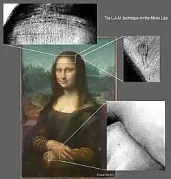 - ↑ (en) Pascal Cotte et Lionel Simonot, « Mona Lisa’s spolvero revealed », Journal of Cultural Heritage, , S1296207420304362 (DOI 10.1016/j.culher.2020.08.004, lire en ligne, consulté le )