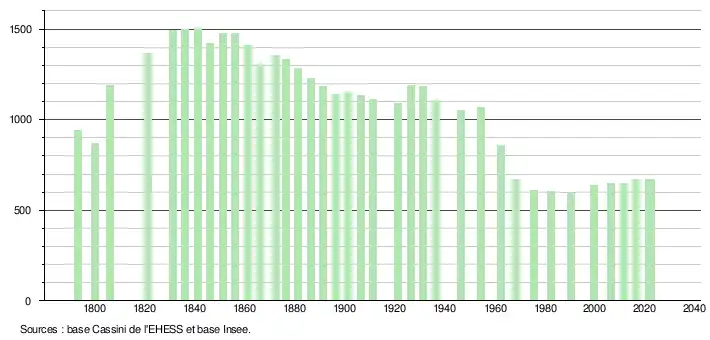 - ↑ Fiches Insee - Populations de référence de la commune pour les années 2006, 2007, 2008, 2009, 2010, 2011, 2012, 2013, 2014, 2015, 2016, 2017, 2018, 2019, 2020, 2021 et 2022.