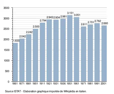 - ↑ (it) Popolazione residente e bilancio demografico sur le site de l'ISTAT.