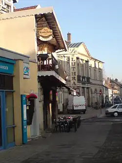 ![]() ![]() ![]() ![]() De gauche à droite, de haut en bas : la sous-préfecture (ancien palais abbatiale), l'usine de panneaux particules, l'église Saint-Martin, les sablières et l'hospice Marie-Richard. |