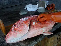 - les caseyeurs antillais (martiniquais essentiellement) qui constatent aussi une réduction de taille des individus capturés (pour les quelques armements qui fournissent des informations), la moitié de leurs prises étant en outre des "vivaneaux tête ronde" (Rhomboplites aurorubens)[3] ; En 2010, cette pêche était équivalente à 10 % du volume pêché par les Vénézuéliens en Guyane ;