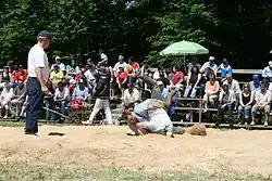 La lutte suisse (Schwingen) est une variante populaire suisse de lutte à la culotte qui se pratique en plein air, sur des zones circulaires couvertes de sciure de bois.