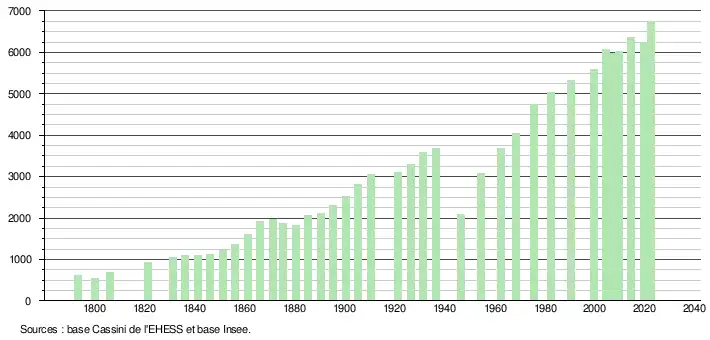 - ↑ Population municipale de référence en vigueur au 1er janvier 2025, millésimée 2022, définie dans les limites territoriales en vigueur au 1er janvier 2024, date de référence statistique : 1er janvier 2022.