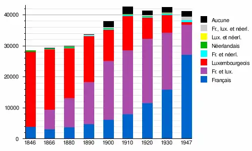 Les langues administratives du pays sont le luxembourgeois, le français et l'allemand (première langue d'alphabétisation)[4]. Comme décrit dans la loi, le Luxembourg n'a pas de langue officielle.