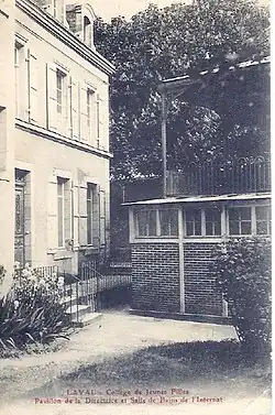 L’établissement primitif, architecture des débuts de la Troisième République est construit en 1885 par l’architecte Léopold Ridel, et sert d’annexe primaire au lycée de garçons (lycée de Laval).