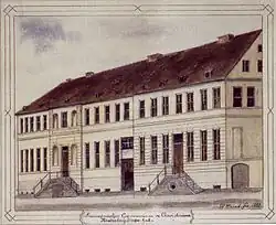 Le palais Wangenheim en 1882, locaux du lycée jusqu'en 1873, situés sur la Niederlagstraße (près d'Unter den Linden), à Dorotheenstadt.