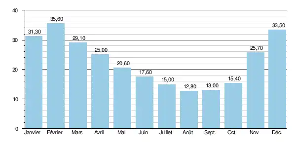 Le module de la rivière à Wervicq-Sud est de 22,8 m3/s.