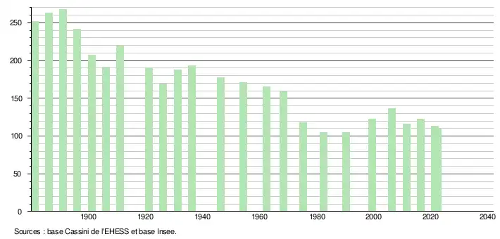 - ↑ Population municipale de référence en vigueur au 1er janvier 2025, millésimée 2022, définie dans les limites territoriales en vigueur au 1er janvier 2024, date de référence statistique : 1er janvier 2022.