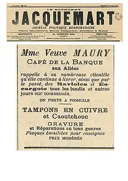 La mère Maury, femme énergique et avisée, se retrouve à la tête de l’établissement, qu’elle sait intelligemment promouvoir, notamment grâce à de la réclame dans la presse locale[2] pour ses ravioles et escargots. Elle obtient une dérogation de la préfecture par arrêté préfectoral[3], en 1907, pour ouvrir son établissement une heure après les spectacles donnés par le théâtre de la ville se situant en face.
