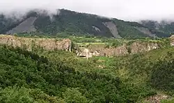 La hauteur de ce roc procure une défense naturelle au village, qui est établi sur une petite plaine, où la culture des arbres fruitiers est possible.