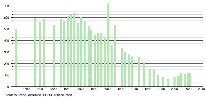 - 1 2 Christiane Vidal, « Chronologie et rythmes du dépeuplement dans le département des Alpes-de-Haute-Provence depuis le début du XIXe siècle. », Provence historique, tome 21, no 85, 1971, p. 289.